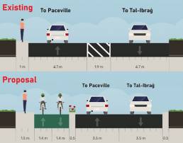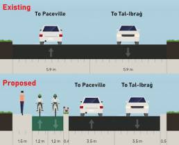 Infrastructure Malta is proposing to widen the main road to 4 lanes with no bicycle path.